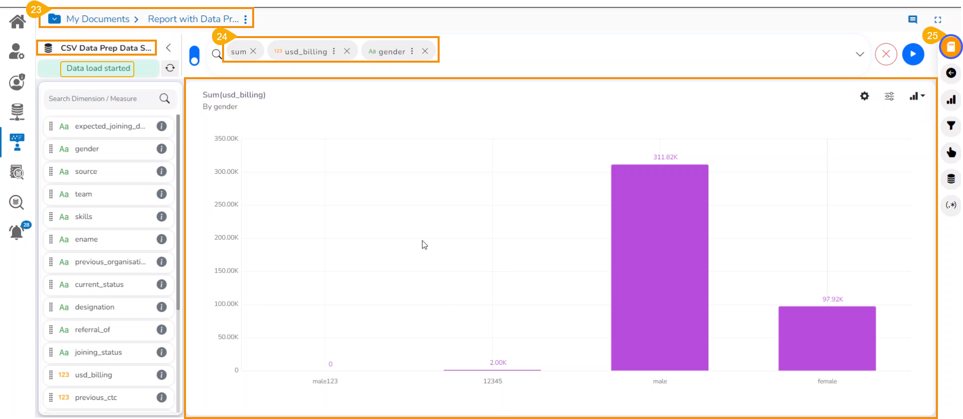 Create a Report with Data Preparation - Inside the Report UI