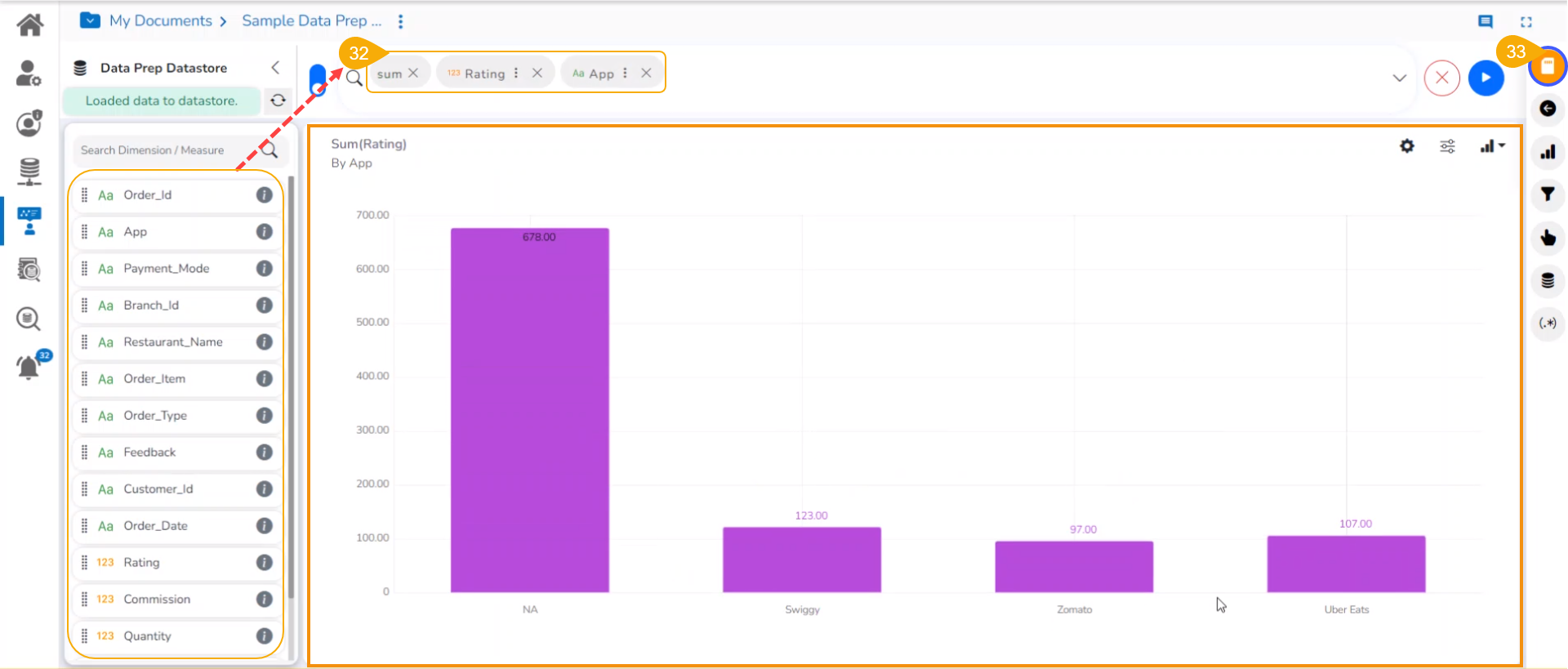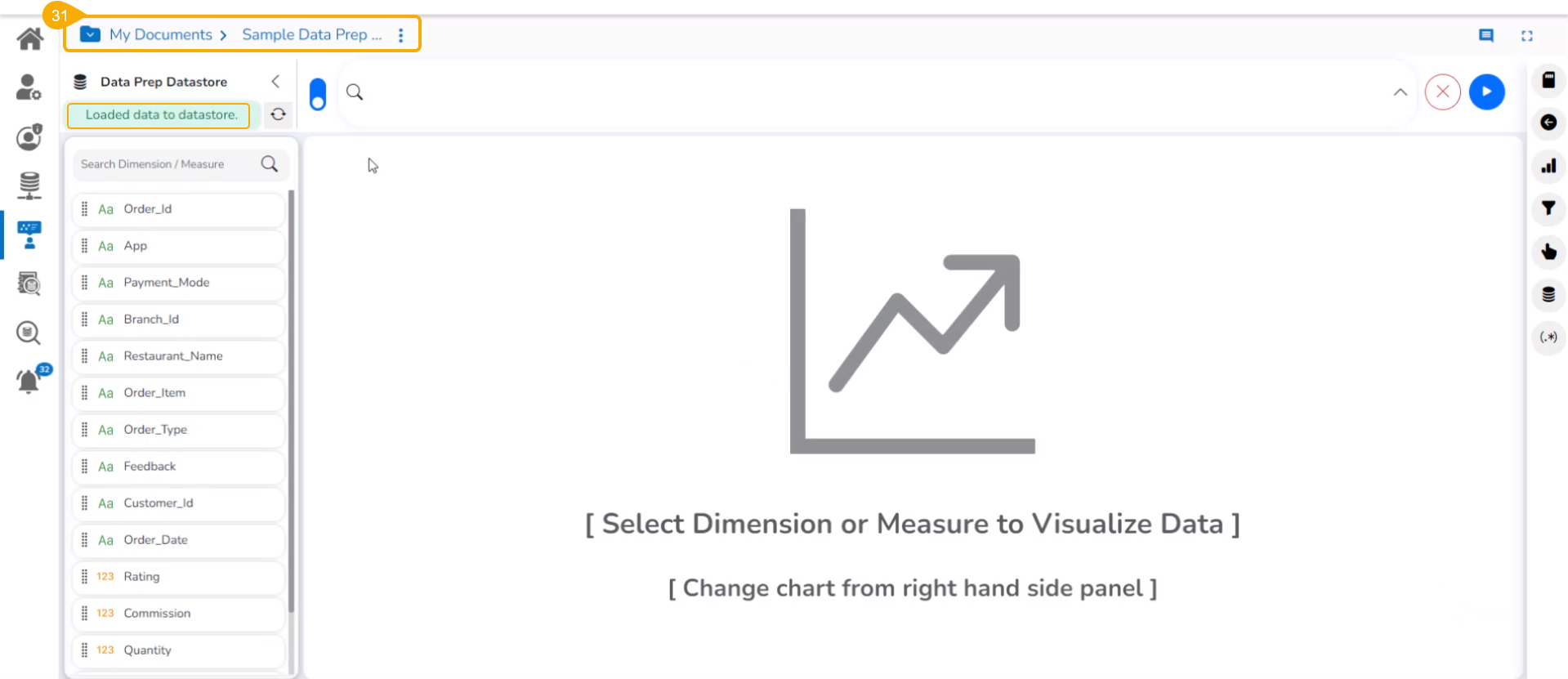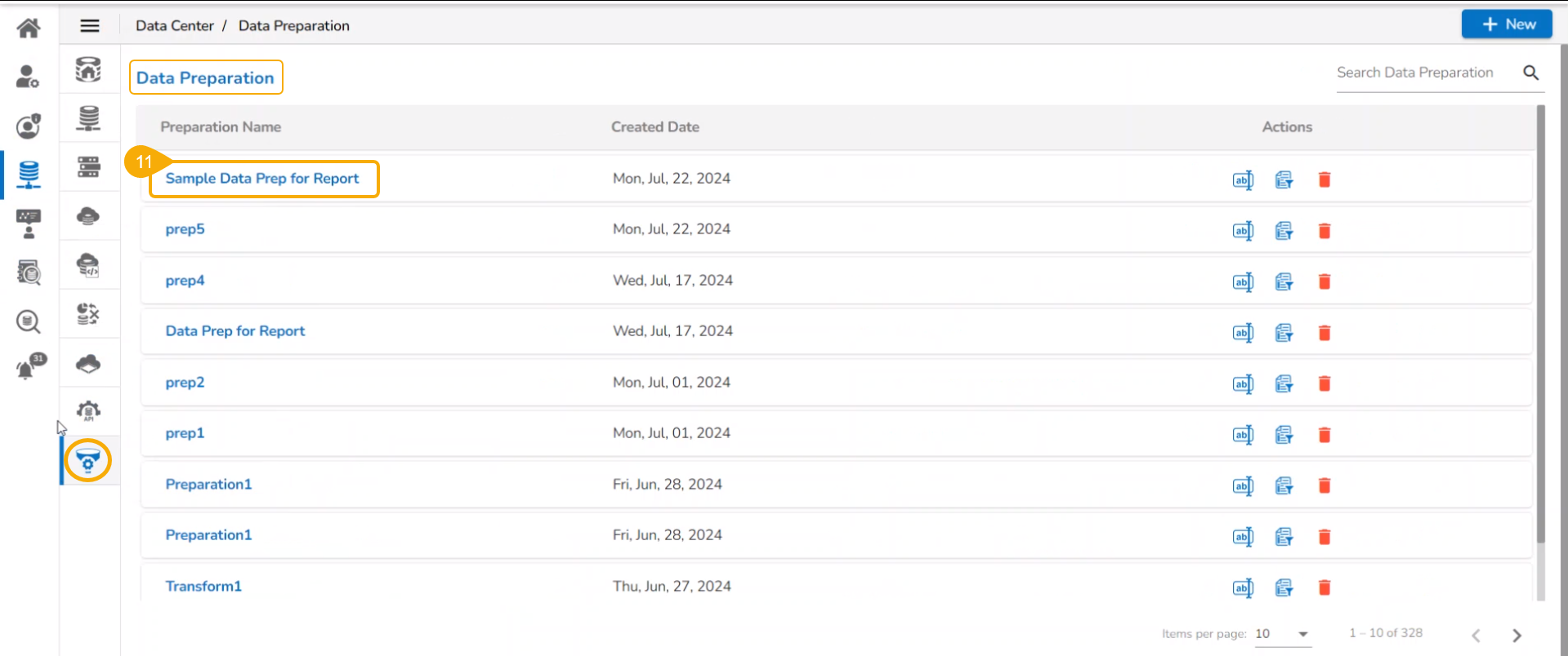 Click the Data Preparation icon to create a Data Preparation and make some transformations.