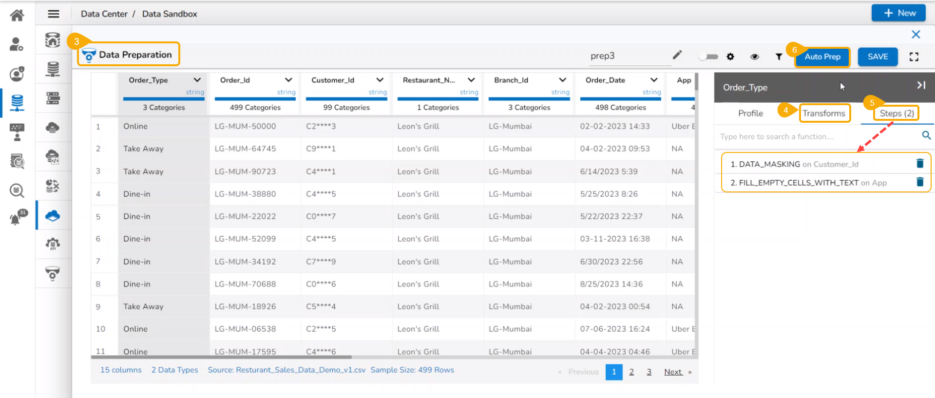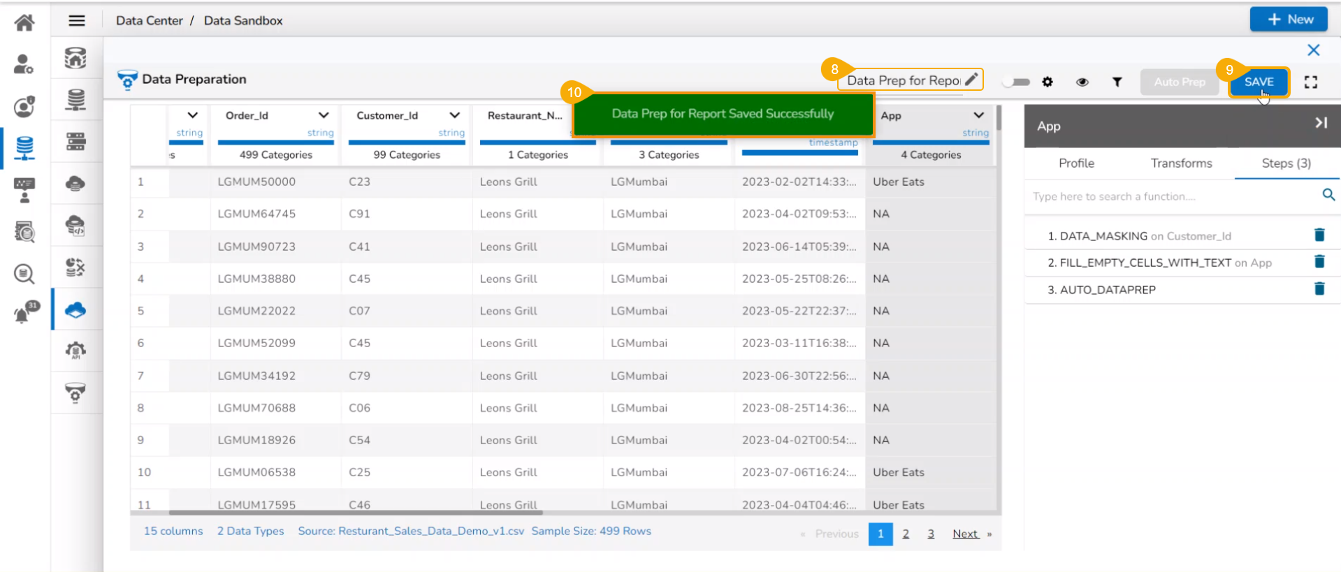 A notification ensures that the data preparation is saved.