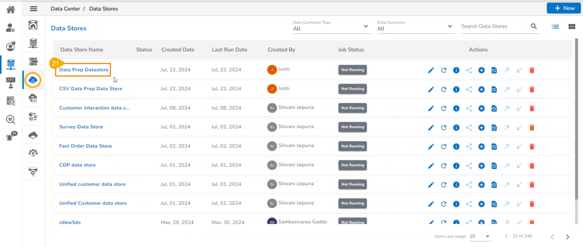 The newly created data store with data preparation steps gets added to the Data Store list.