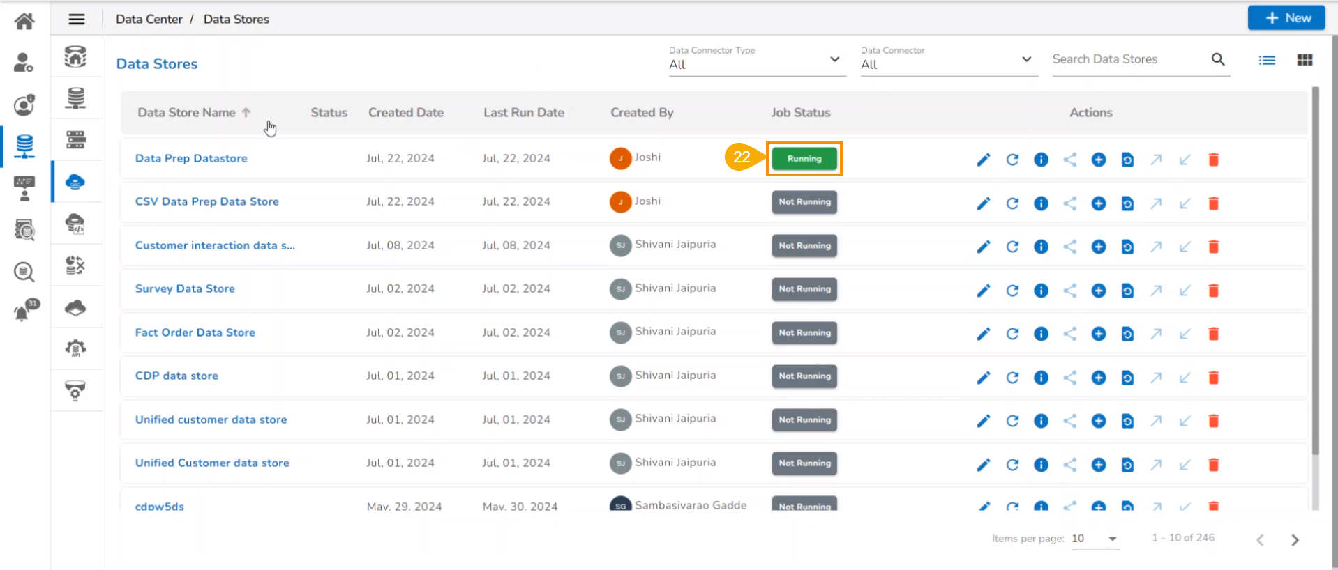 Wait till the Job Status for the newly created Data Store gets displayed as Running.