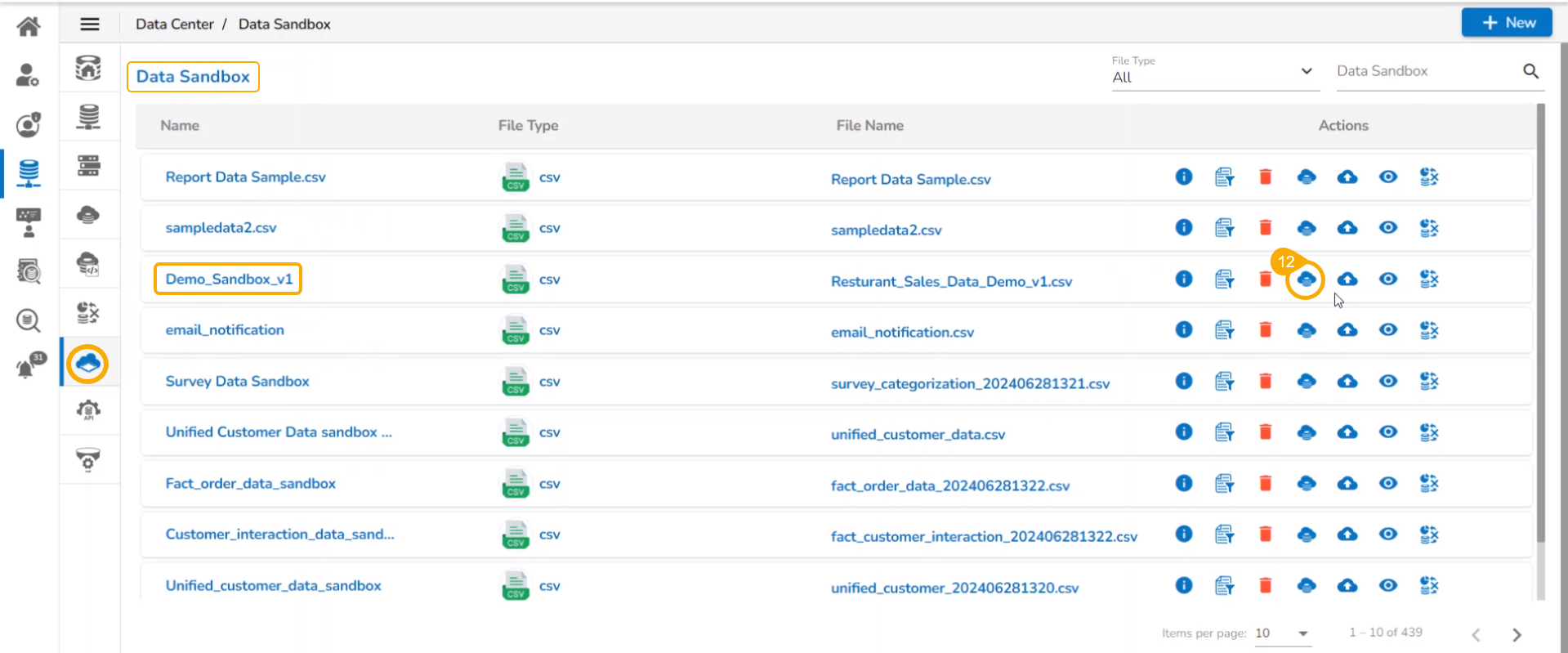 Navigate to the Data Sandbox list from the Data Center module.