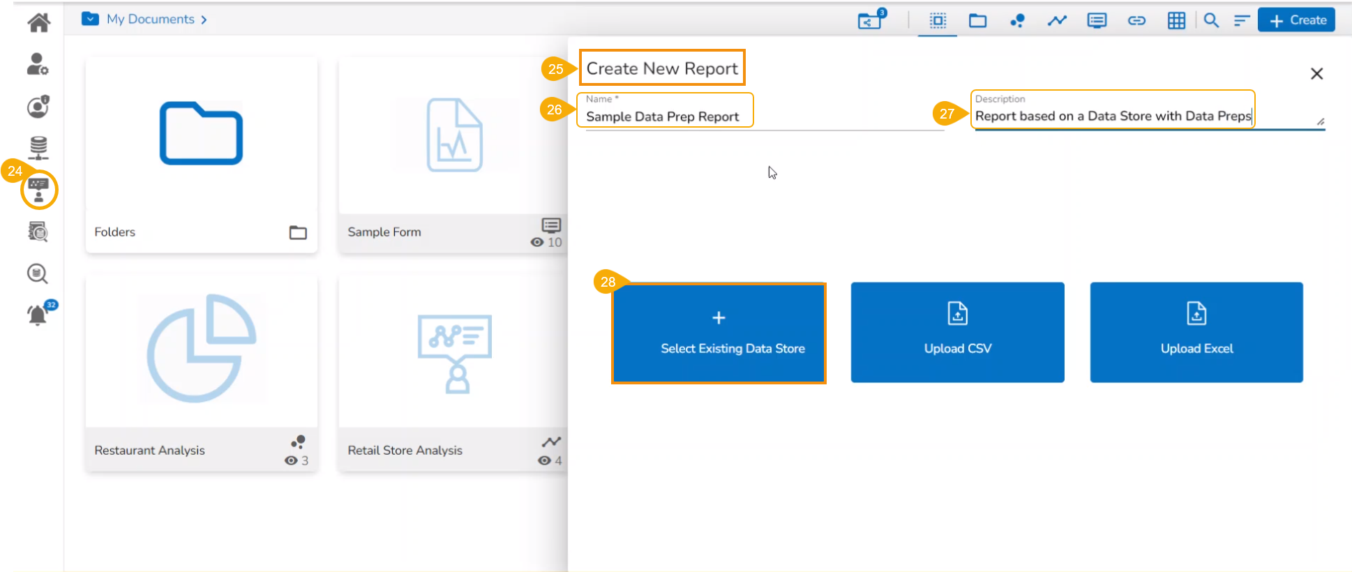 Please follow the below-given steps to create a new Report based on a Data Sandbox file with Data Preparation Steps: