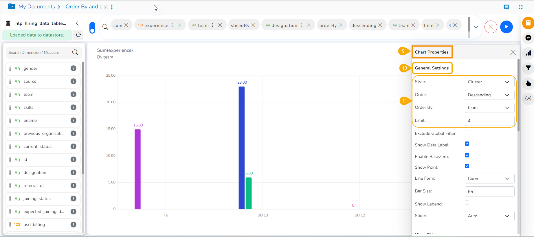 * The ***View*** displays sliced data in the set order and limit.