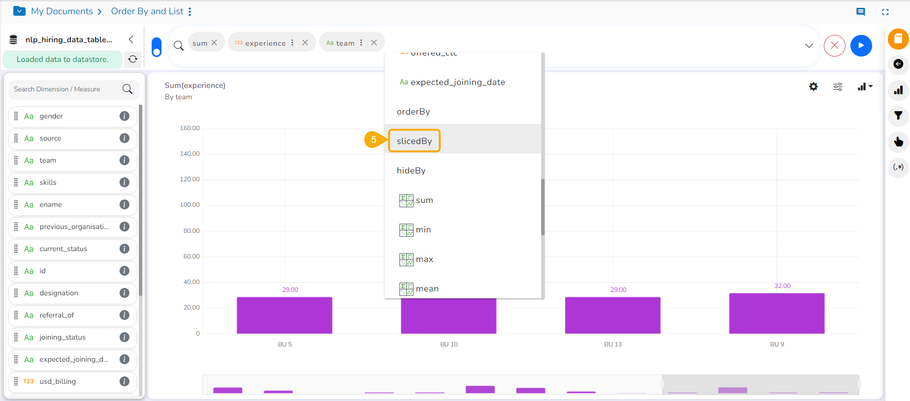 * Select the ***sliceBy*** option by the next click.