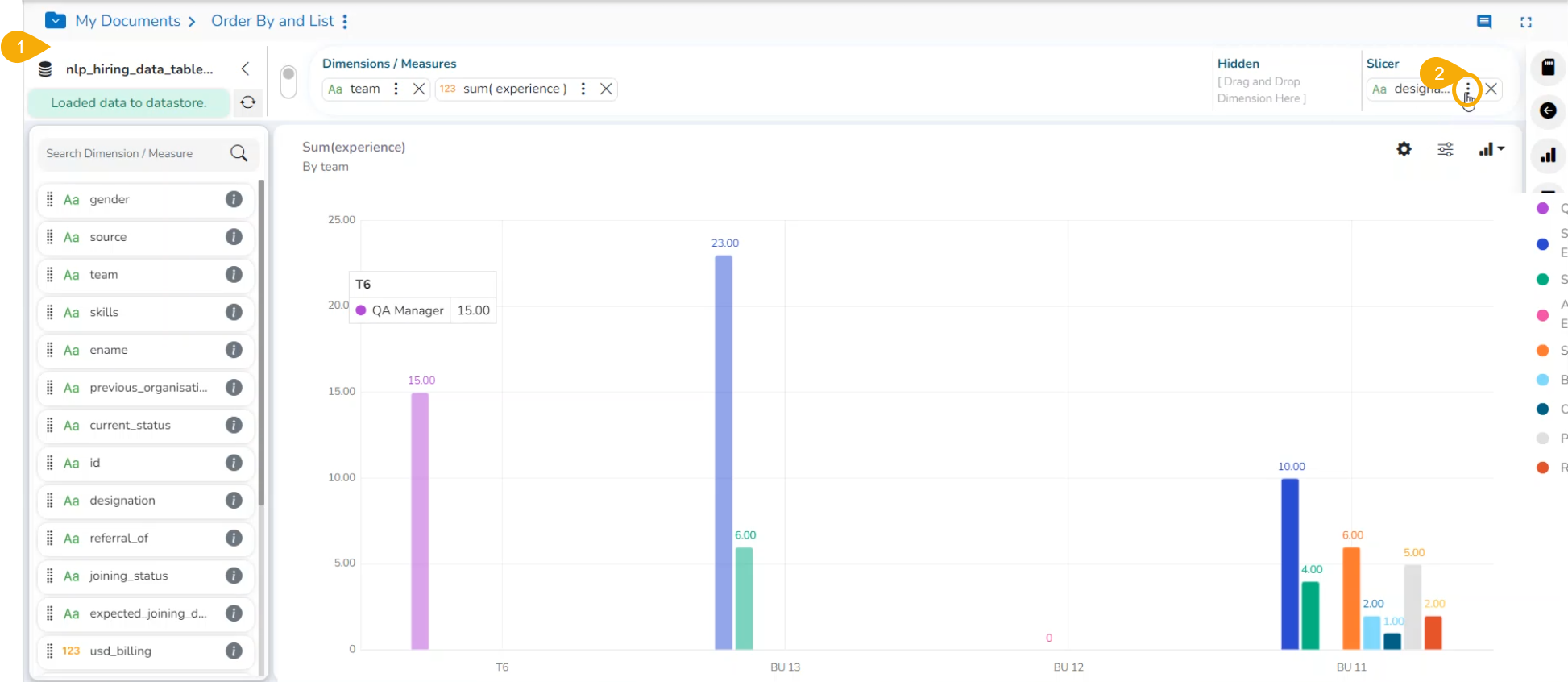The users can add a further dimension to the created view using the ***Slicer*** option.
