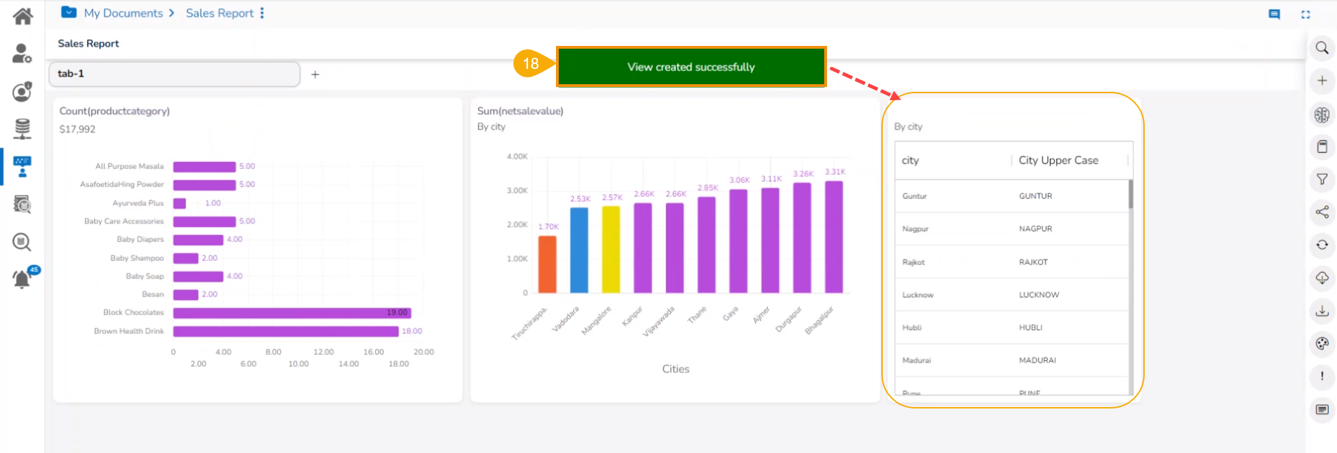 A notification appears and the user gets redirected to the final screen of the Report with the View added to it.