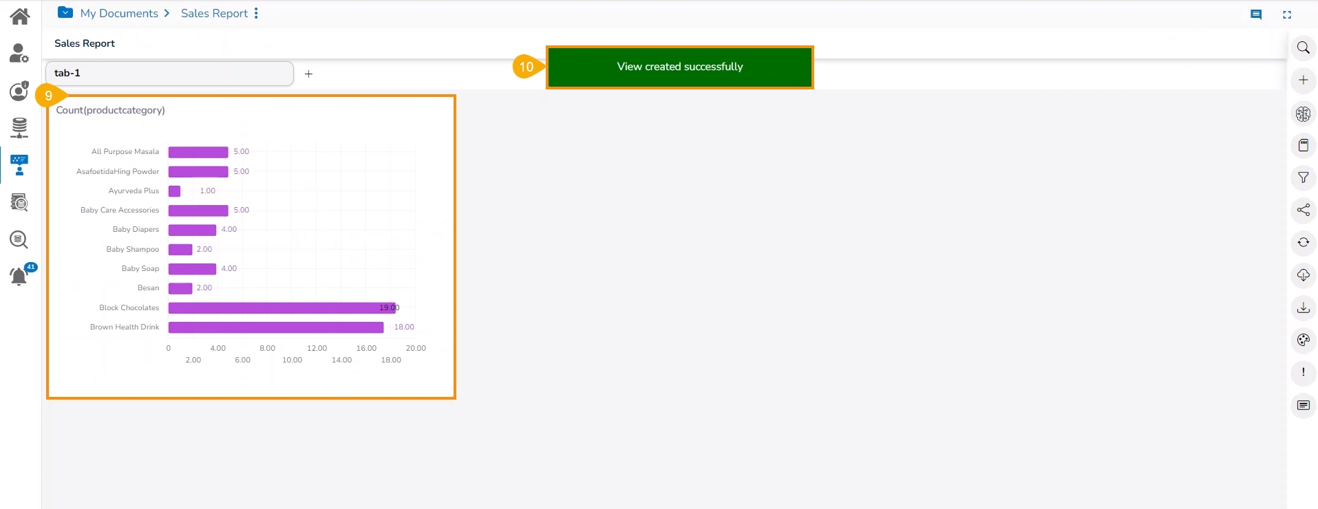 The user gets redirected to the final report screen, the selected View gets saved to the final Report screen.