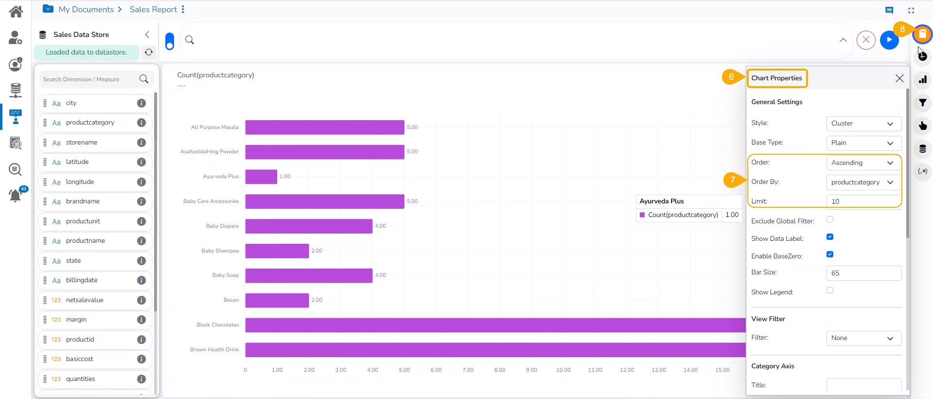The user can apply the various modification options to the View from the Design page (E.g., The below-given image displays the View after applying for the ascending order, order by option, and limiting the display to 10 records).