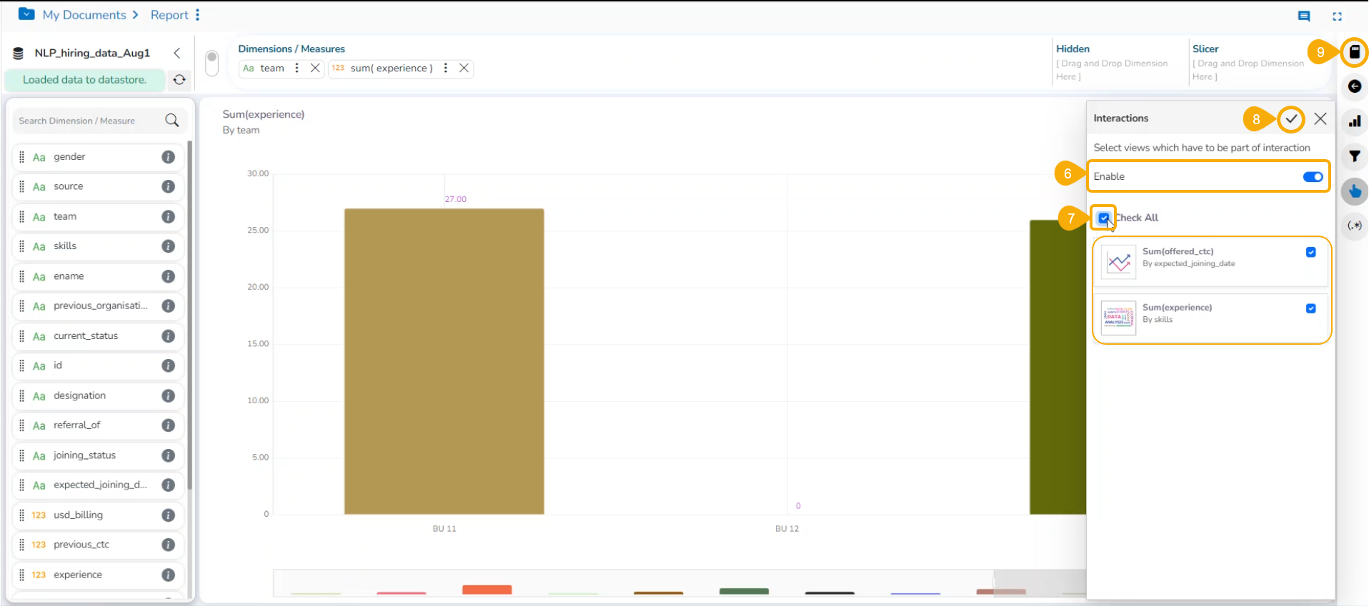 The Interactions option is the next level of applying the Global Filter. The suggested feature enables users to select multiple views of the storyboard to filter based on a specific view. By default, on a single click, all the views permitted for interactions get filtered.
