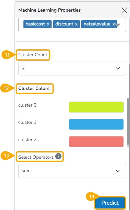 Some Cluster Colors will be provided based on the selected count of the Cluster. The user can modify the pre-selected colors by using the color pallet that appears by clicking the existing cluster color field.