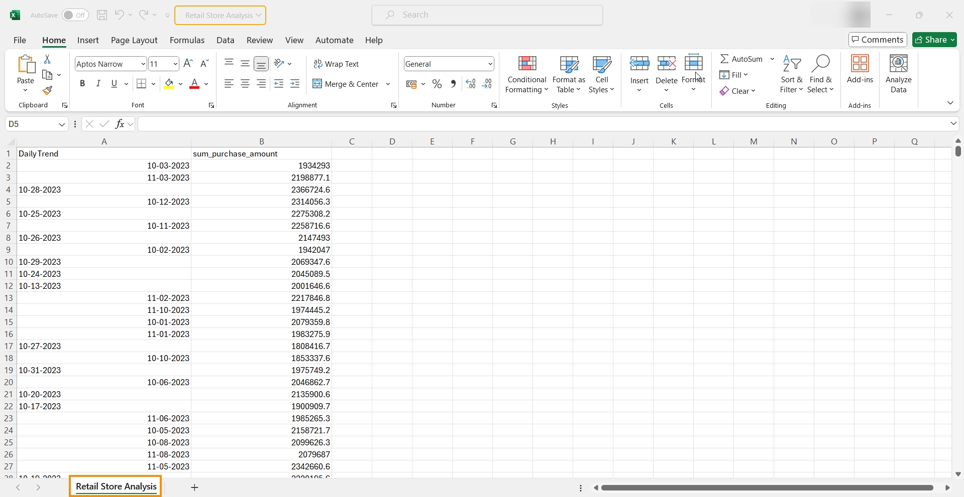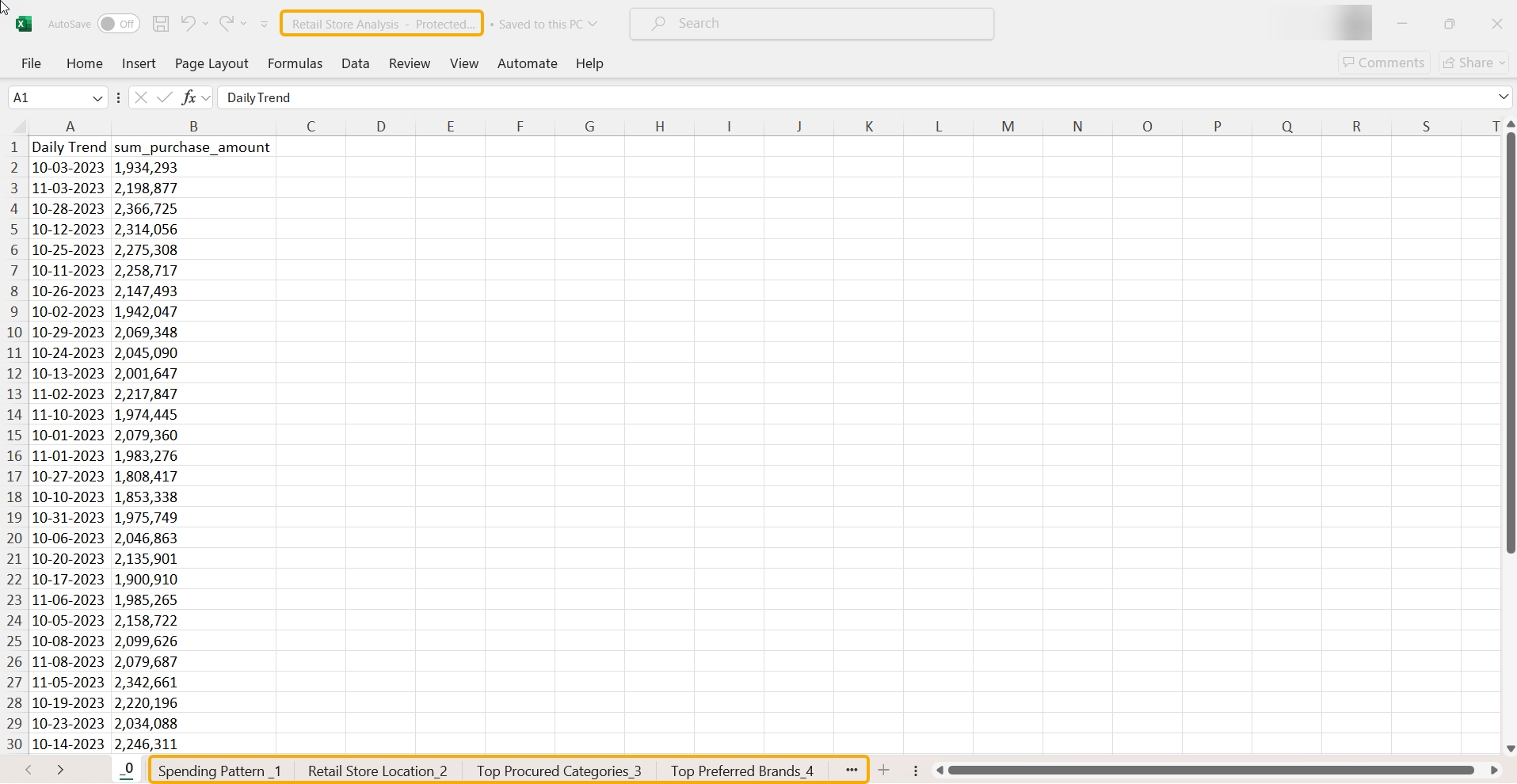 The story data gets saved in the CSV Excel format by clicking the CSV option. The collective data of different Views is displayed on one sheet.