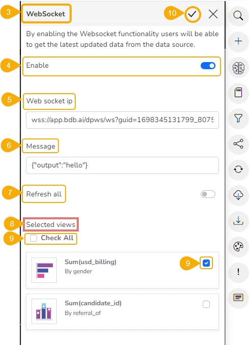 This option will help the user to refresh the Story with latest data based on the saved WebSocket configuration.