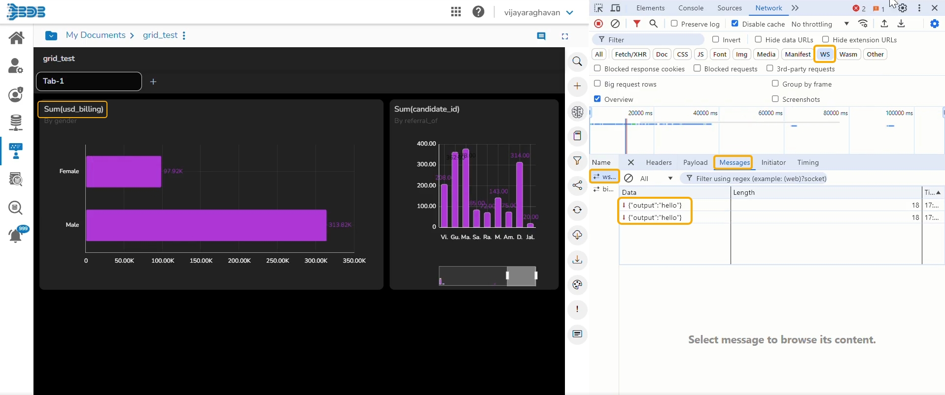The WebSocket panel opens.