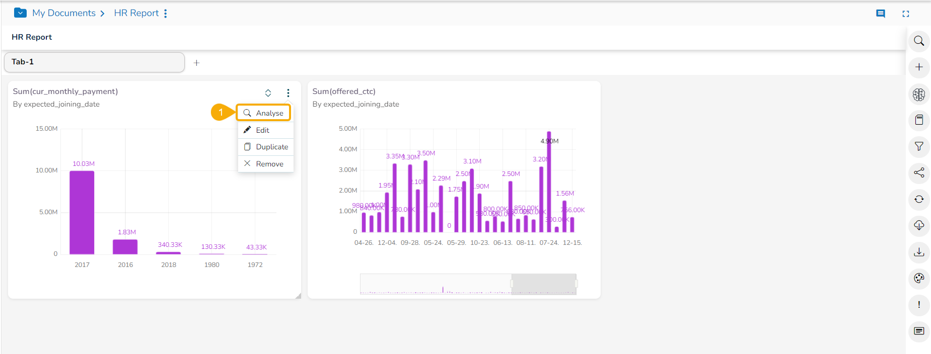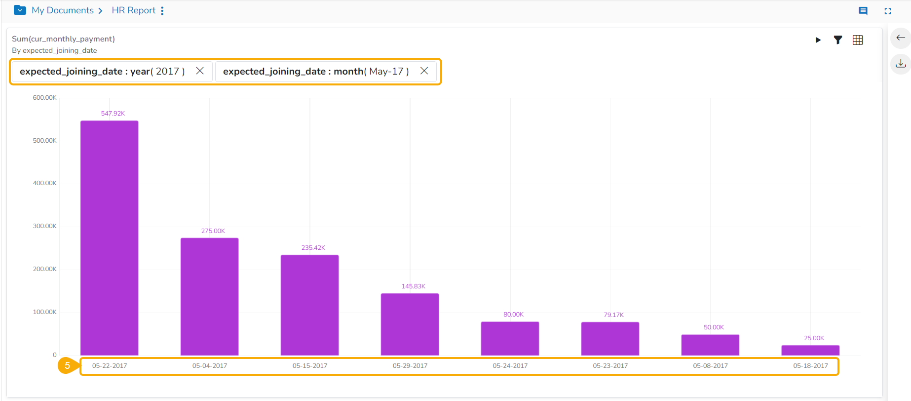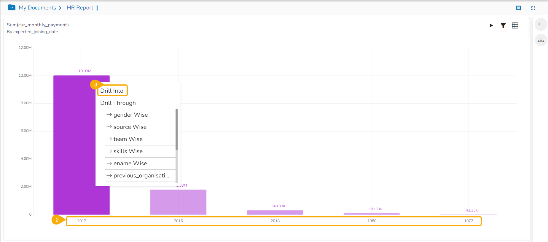 This data drill allows the user to penetrate into deeper granularity level of the time dimension.