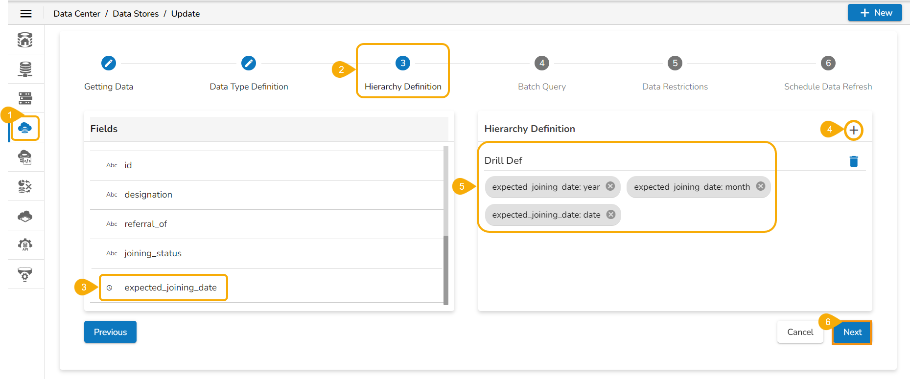 Defining the Hierarchy Drill for a Date Dimension
