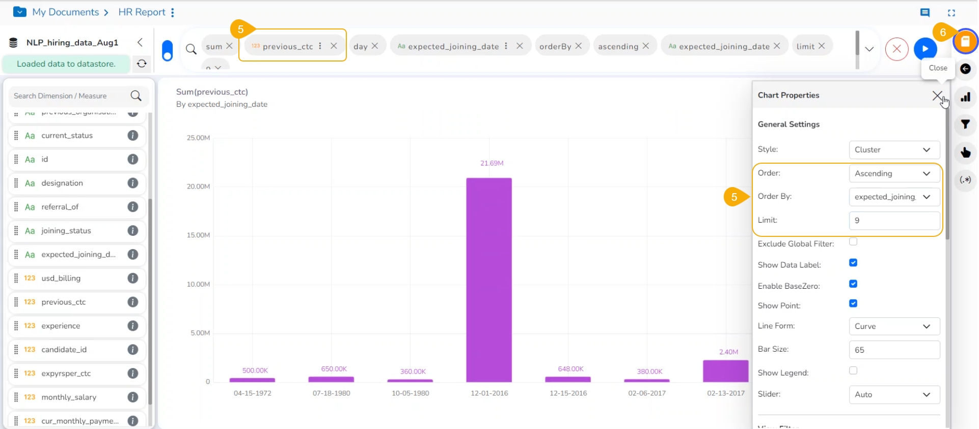 Edit the required details. Here, the name Dimension and Order By properties are modified.