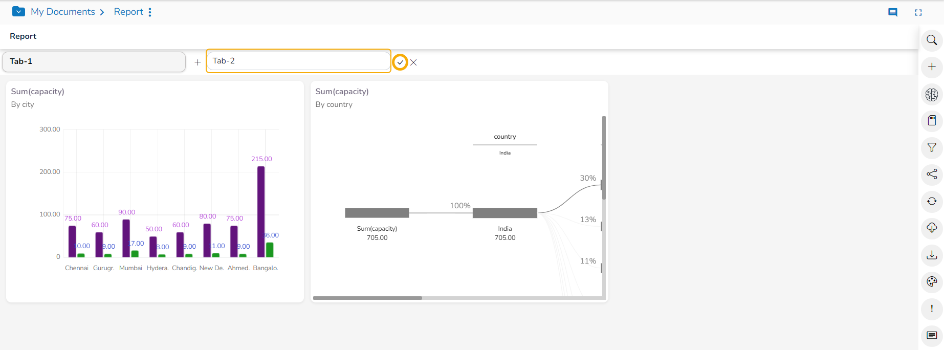 The Tab UI helps to add more details in tabular format to a Report.