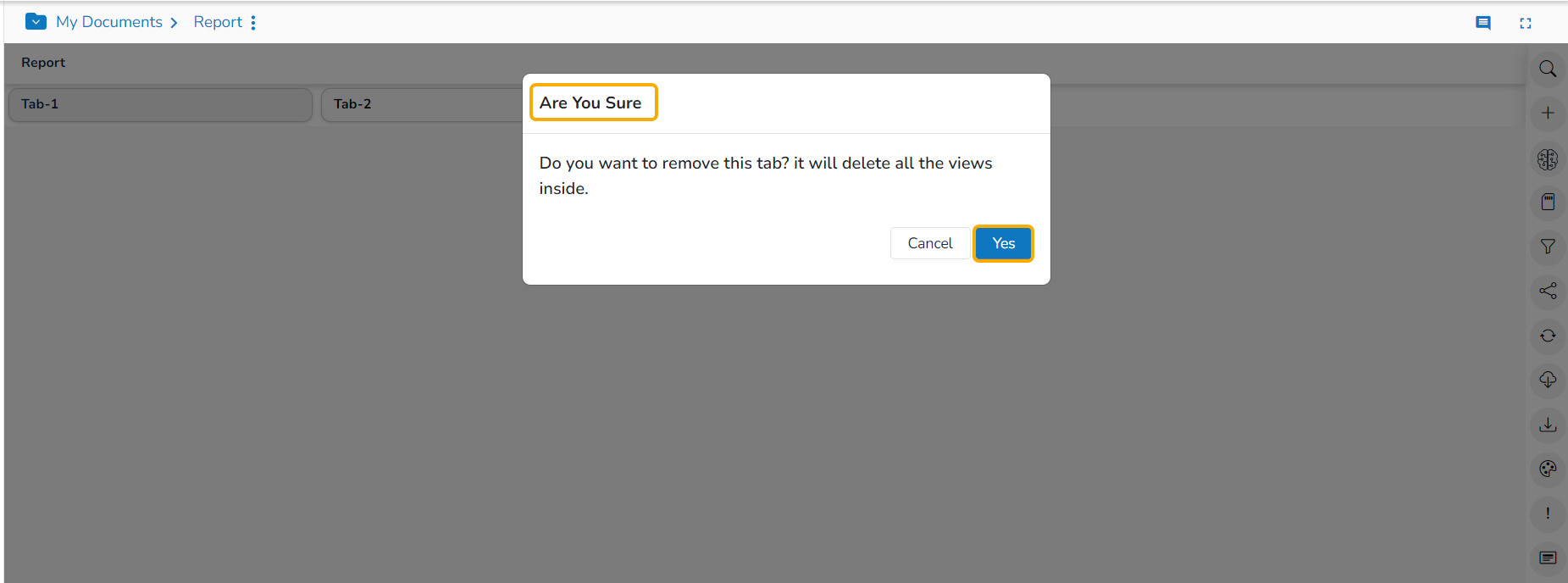 Click the Yes option to remove the concerned tab.